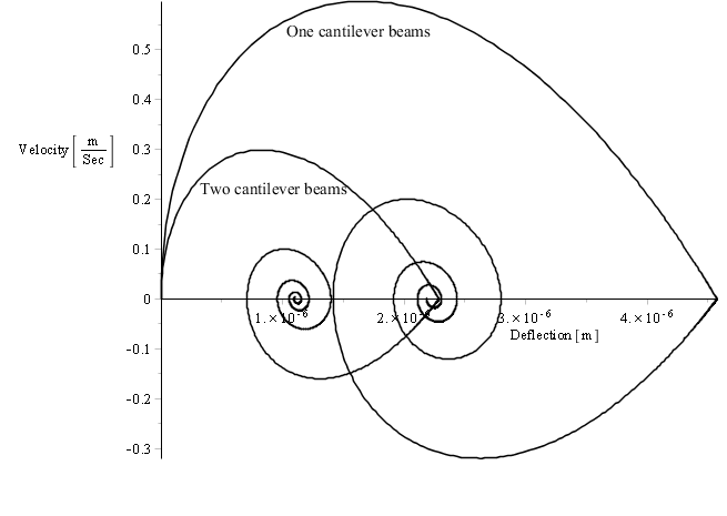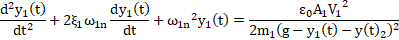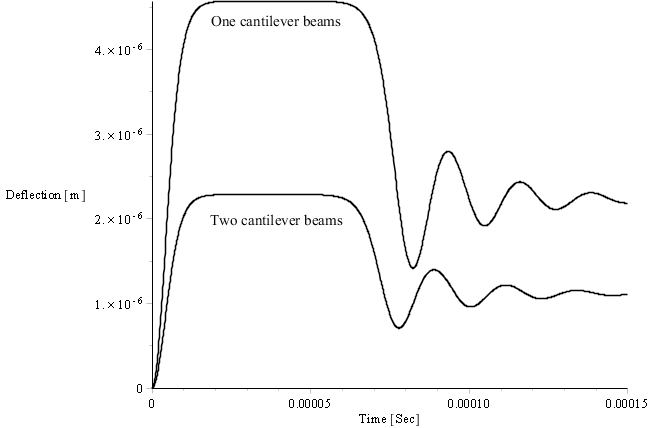 If one assumes that deflection of top beam is y1 and deflection of lower beam is y2 the differential equations of micro-cantilever beams can be written as following: