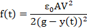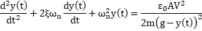 is absolute permittivity of the medium between the surfaces, g is initial distance between beam and substrate, A is area of the beam and V is the applied voltage.