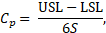 where USL is the upper specification limit, LSL is the lower specification limit and S is the process standard deviation of each trial. For the torsional strength of tapping screws, when only lower specification limit is necessary, the process-capability ratio [1] is measured,